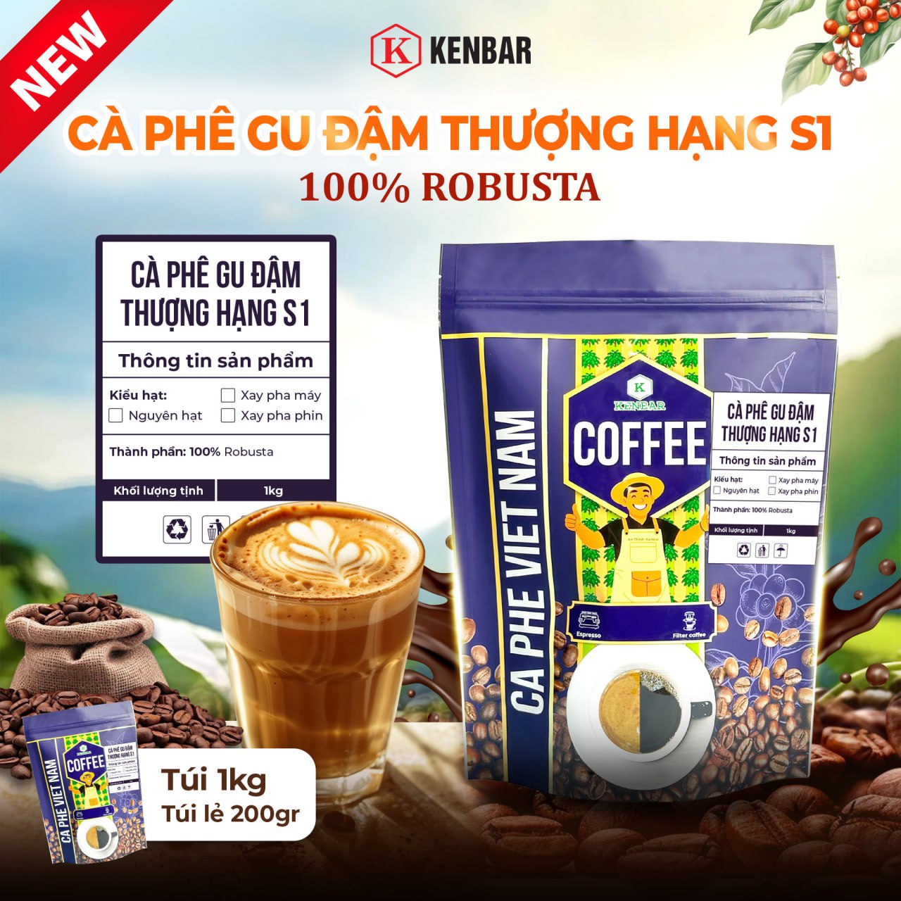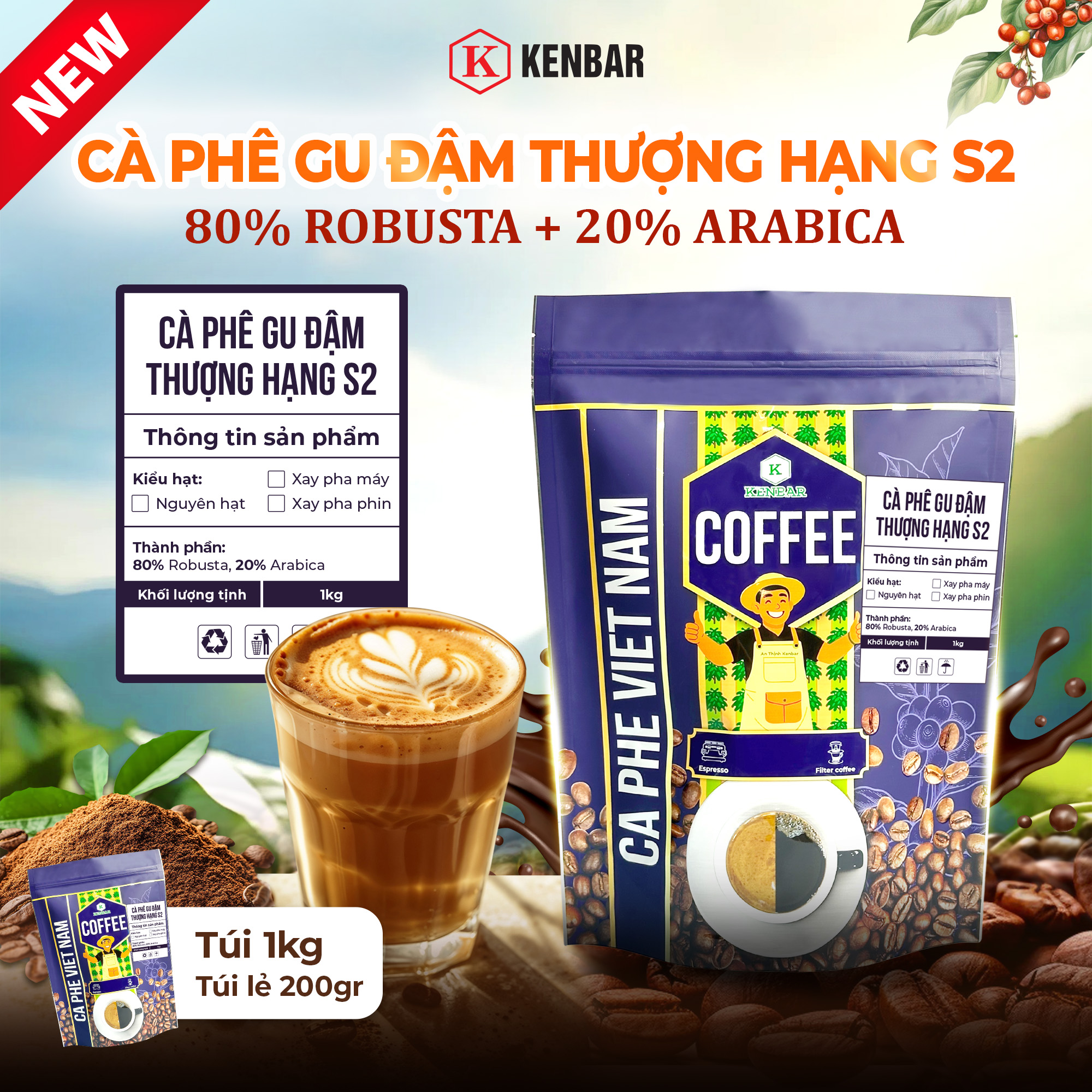 Cafe Gu Vừa Đậm Vị Cao Cấp Kenbar 200G _1KG
